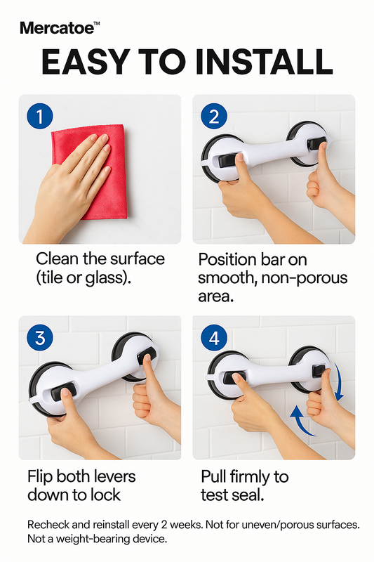 12" Shower Safety Grab Bars (2-Pack) Strong Suction Handles for Bath & Shower
